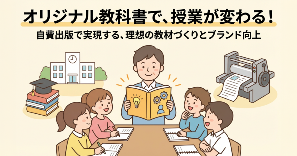 塾やスクール、セミナー講師の方へ。オリジナル教科書やテキストを自費出版するメリットと制作のポイントを解説します。カリキュラムに沿った構成、書き込みやすい用紙選び、オンデマンド印刷の活用など。生徒の成長を加速させる、あなただけの教材を作りましょう。 -