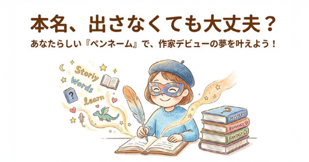 自費出版でペンネーム(筆名)を使うメリットと注意点を解説します。身バレ防止やブランディング、公私の切り替えなど。覚えやすい名前の決め方やアイデア、本名が必要な契約・著作権登録の手続きについても。あなたにぴったりの著者名を考えましょう。
