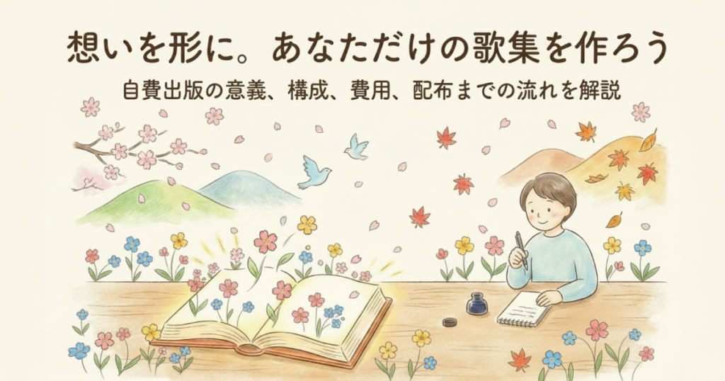 詠みためた短歌を歌集として自費出版したい方へ。歌集を出版する意義や、編年体・テーマ別などの構成方法、上製本や函入りなどの装丁、そして費用を抑える工夫までを解説します。あなたの言葉の結晶を、美しい本という形に残しましょう。 -