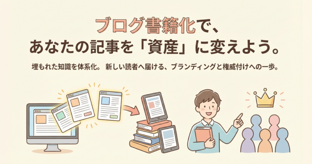 書き溜めたブログ記事を書籍化して自費出版したい方へ。デジタル資産を「本」という形に残すメリットや、リライト・縦書き変換などの制作手順、著作権の注意点を解説します。ブログサービスやPODを活用して、新たな読者層へ届けましょう。 -